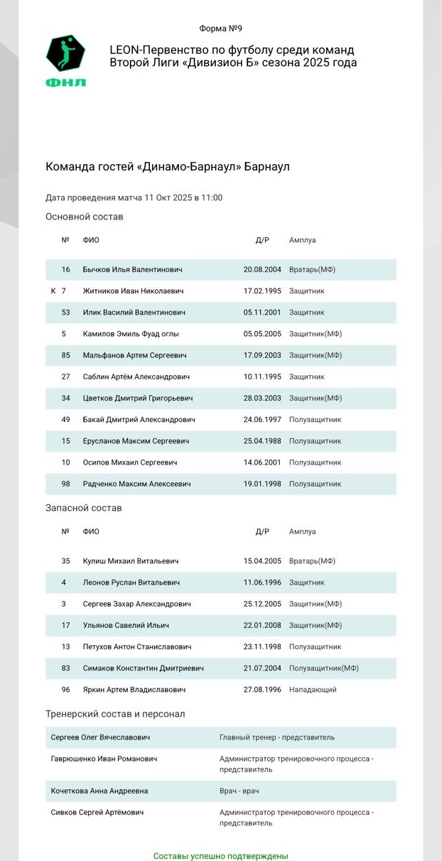 Футболисты «Динамо-Барнаул» отправились на вторые утс в Кисловодск