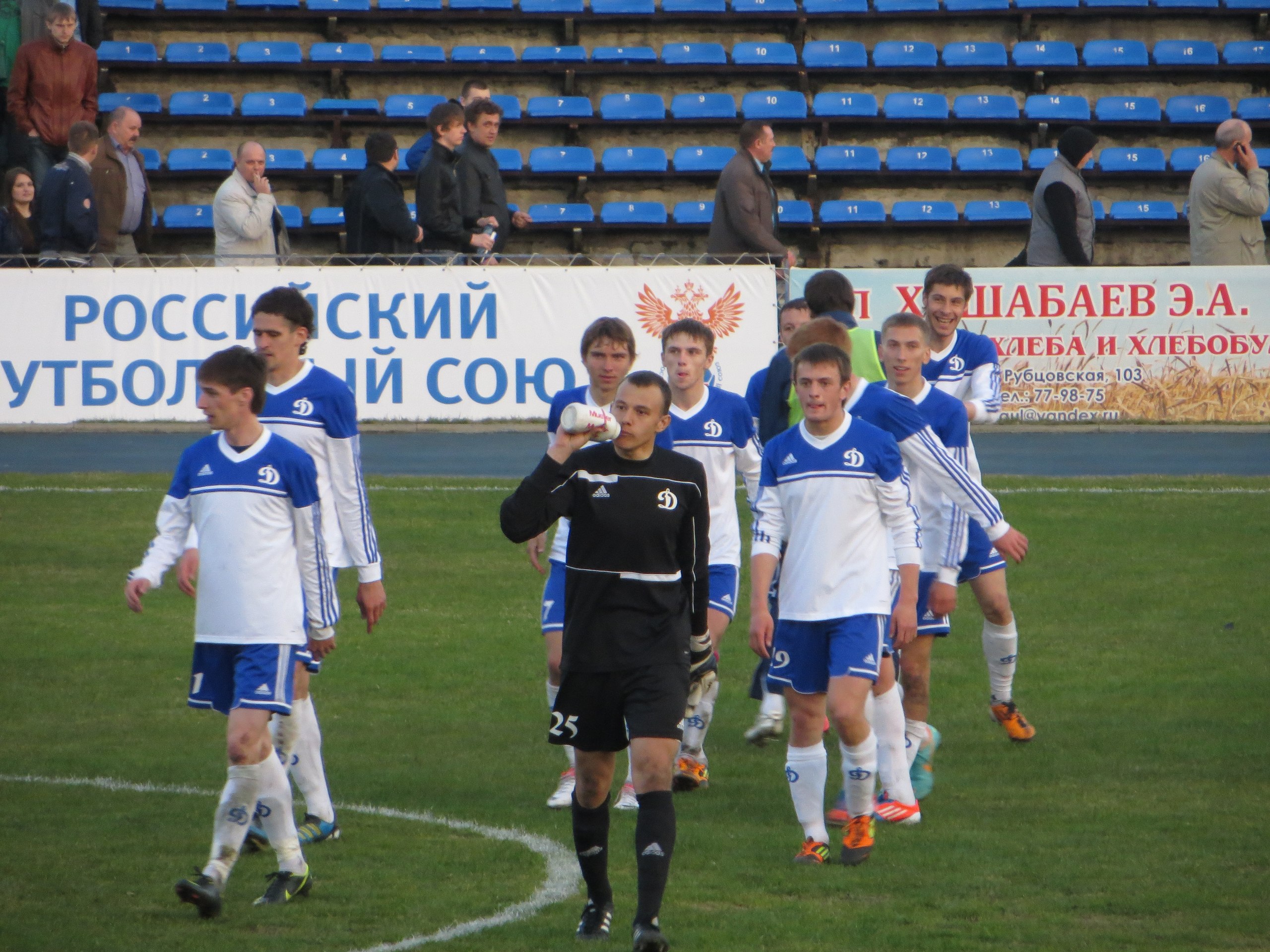 3 мая динамовцы принимали «Читу», идущую на втором месте вслед за «Лучом-Энергией» из Владивостока. Прямо скажу, «Чита» не показала той игры, которую от нее ждали. Прямолинейная игра в атаке, без выдумки, так и не привела читинцев к голу, забитому с игры. Пенальти был ими у судьи выпрошен после картинного падения их нападающего, когда того чуть подтолкнул в спину в своей штрафной площади Николай Нечаев. Зачем он это сделал, когда игрок гостей не доставал уходивший за лицевую линию мяч — это уже другой вопрос. Но то, что по каждому спорному эпизоду читинцы апеллировали к судье, симпатизирующему им и без обращений, выглядело неспортивно.