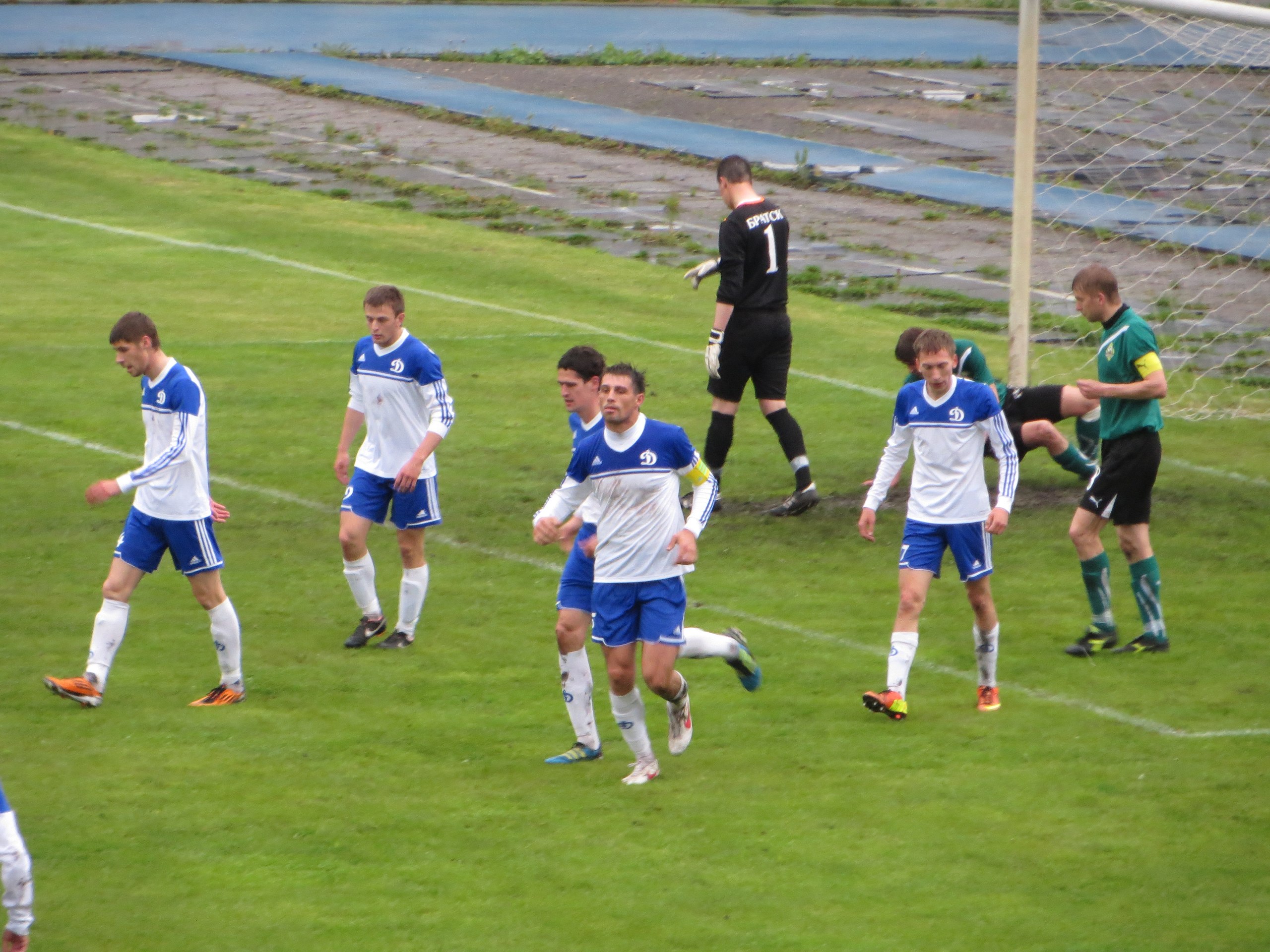 И все же хозяевам удалось сравнять счет. Индивидуальными действиями блеснул левый полузащитник Владимир Азаров. После аута он всё сделал сам: обыграл четверых динамовцев, и с угла вратарской пробил точно в дальнюю девятку. Мяч от крестовины влетел в ворота – 1:1. Но на последних минутах молодой вратарь хозяев отбил мяч перед собой, а первым на подборе оказался Андрей Полянский, который с линии штрафной вогнал мяч в угол ворот – 2:1.