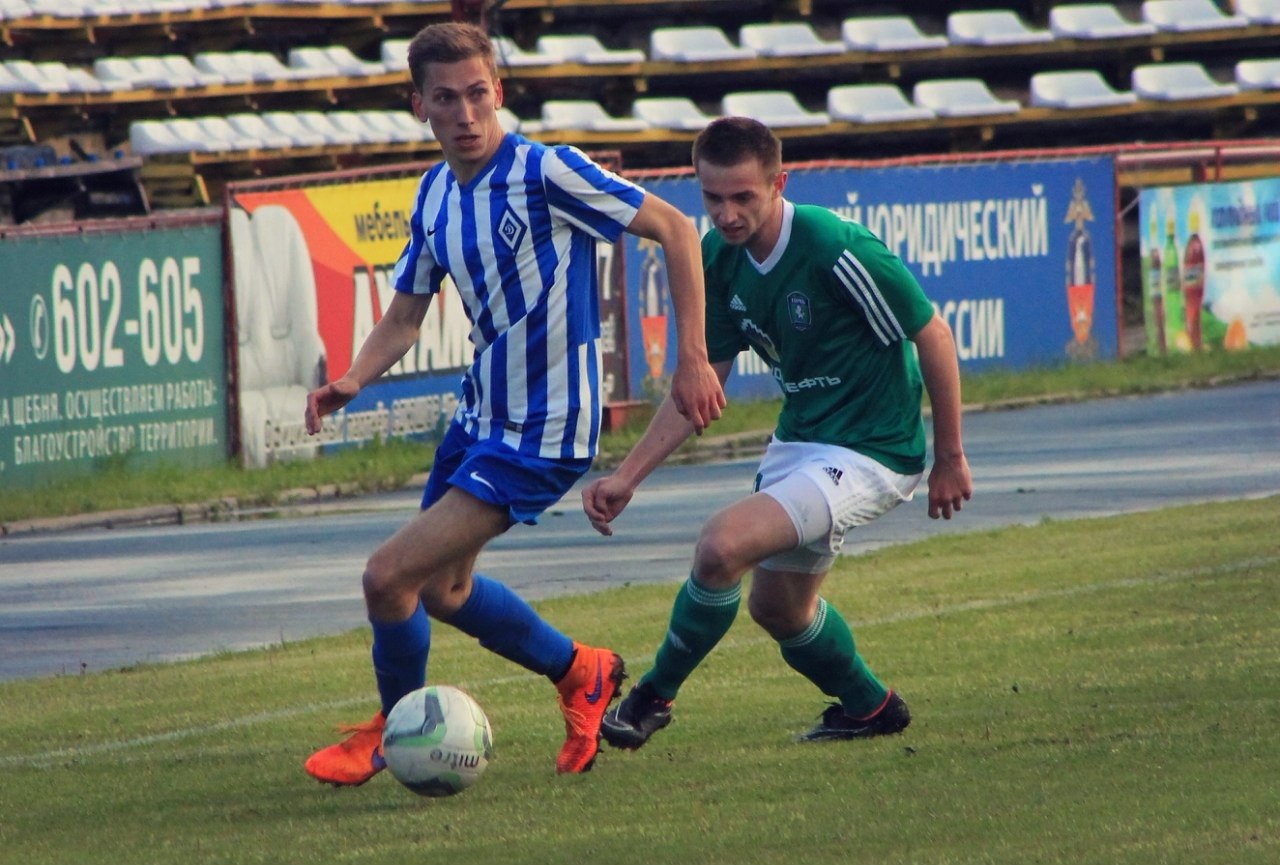 В матче с «Томью-2» место в воротах «Динамо» занял Александр Глумов. Первым по-настоящему опасным моментом стал сильный дальний удар Константина Погребана, который пришелся в перекладину ворот молодых томичей. Вскоре он же выступил в роли ассистента: его проникающий пас в штрафную прервал защитник, но мяч отлетел на ногу шустрому Никите Казанцеву – 1:0.