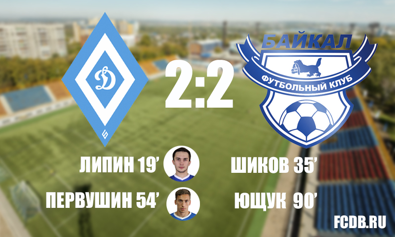 Поведя в счете, динамовцы не отошли в оборону, а продолжали гнуть свою линию и создали еще несколько опасных моментов у ворот «Байкала». Так на 64-й минуте Липин красивым обводящим ударом бил в дальний угол ворот, но хозяев поля вновь спас от гола Иканович. После 80-й минуты «Байкал» перешел на ожидаемый и откровенный «навал». У ворот Евгения Малафеева все чаще стали появляться тревожные опасные моменты. На последней минуте основного времени Малофеев сумел отразить мощный «выстрел» Сабанова, но первым на подборе мяча оказался иркутянин Алексей Ющук, который и принес хозяевам поля такую желанную ничью, позволившую им бороться за первое место и дальше – 2:2.